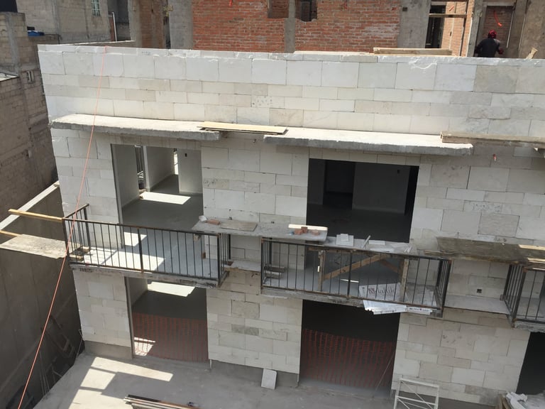 Diseño, desarrollo y construcción ejecutados. Consistió en un par de edificios escalonados separados por una terraza; albergan entre los dos, 33 Estudios de 40 a 42 m2 cada uno. En total de construcción ya con sus áreas comunes, de servicio y circulaciones suman los 1,878 m2.