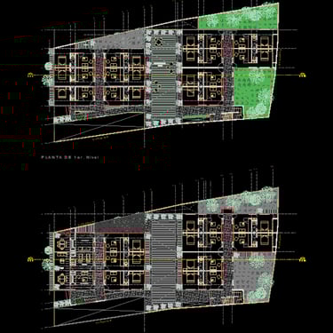 Diseño, desarrollo y construcción ejecutados. Consistió en un par de edificios escalonados separados por una terraza; albergan entre los dos, 33 Estudios de 40 a 42 m2 cada uno. En total de construcción ya con sus áreas comunes, de servicio y circulaciones suman los 1,878 m2.